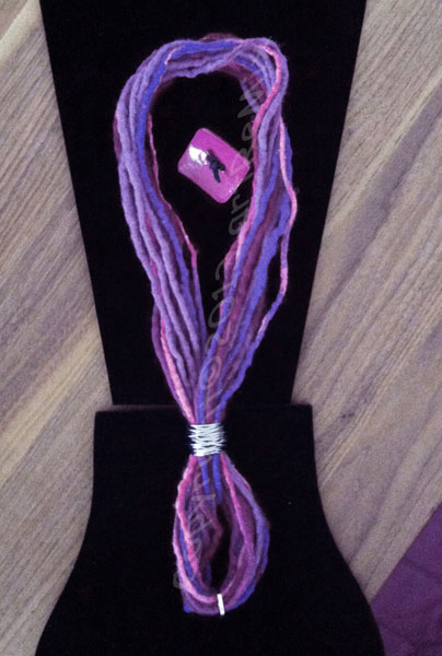 necklet of violet-colored wool-felt-string with silver rings